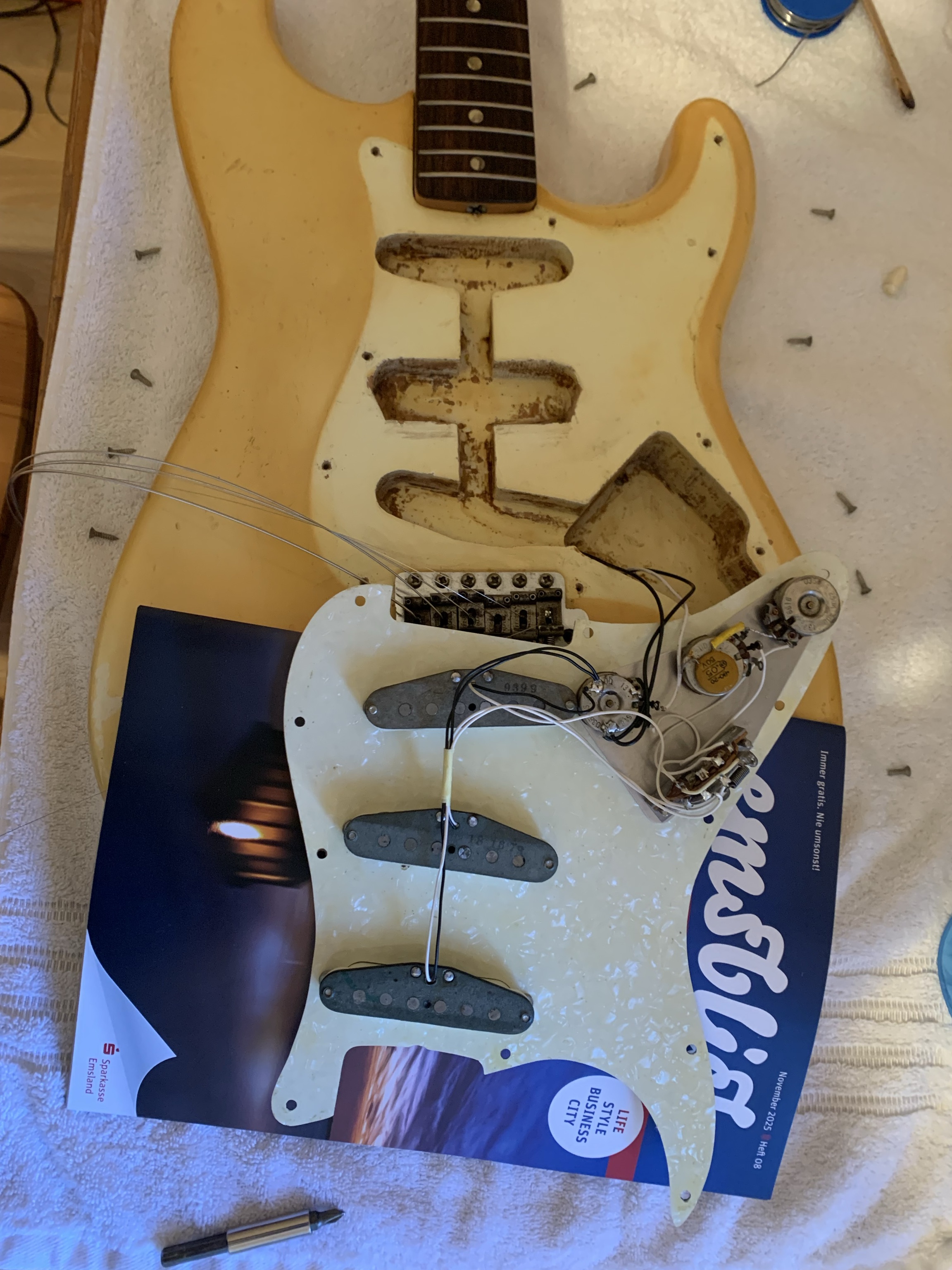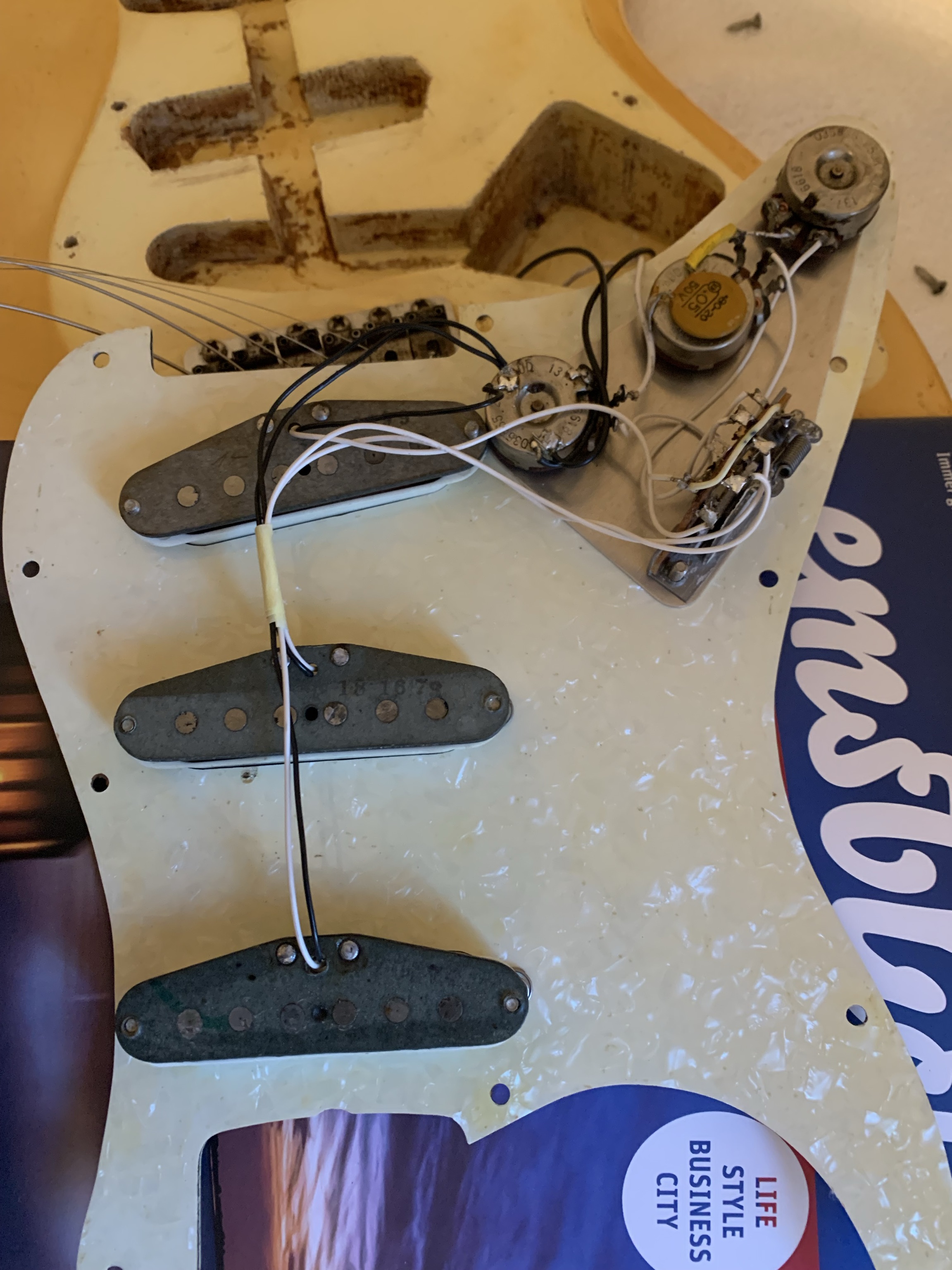| Details: | A beautifully yellowed Hendrix-style Stratocaster |