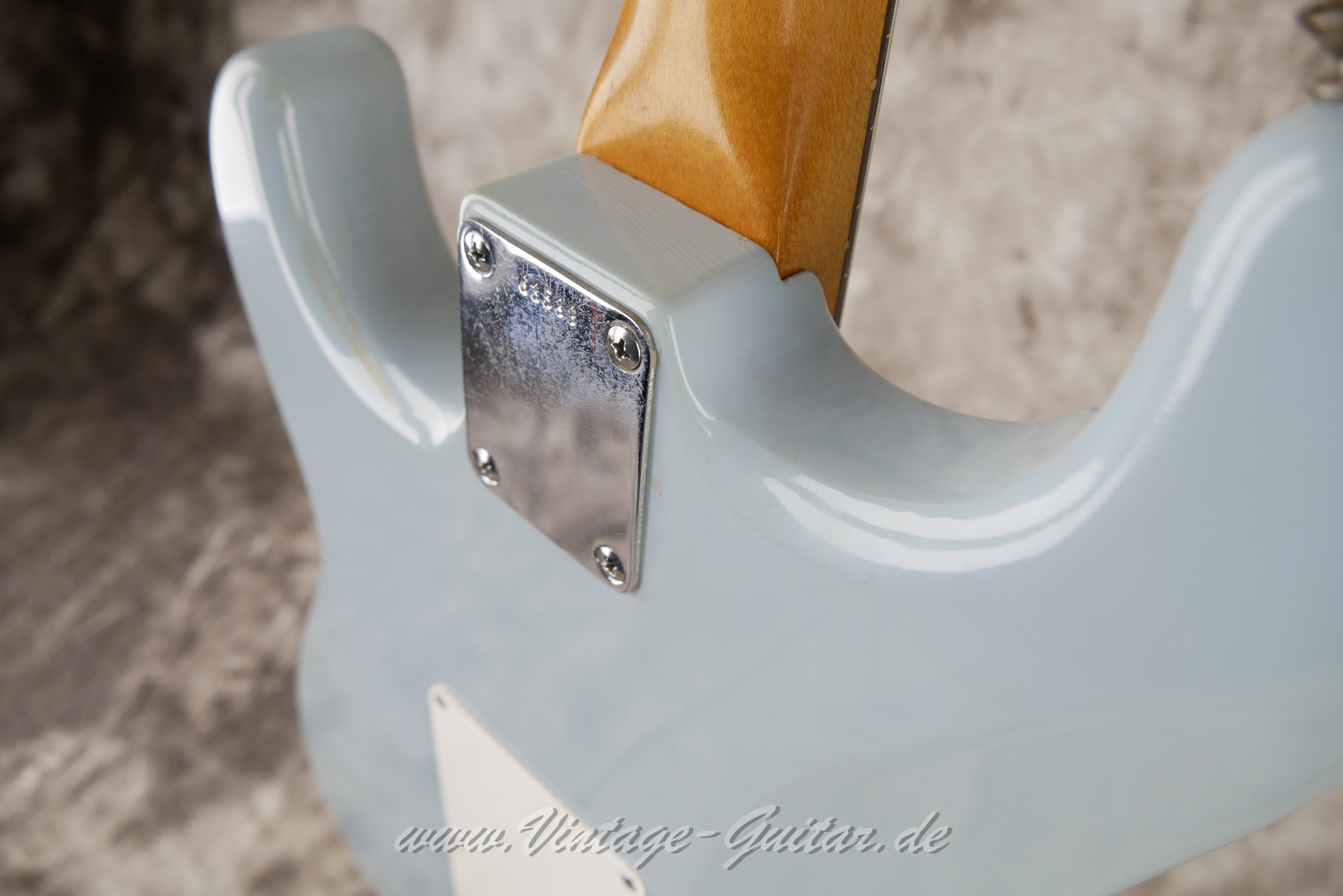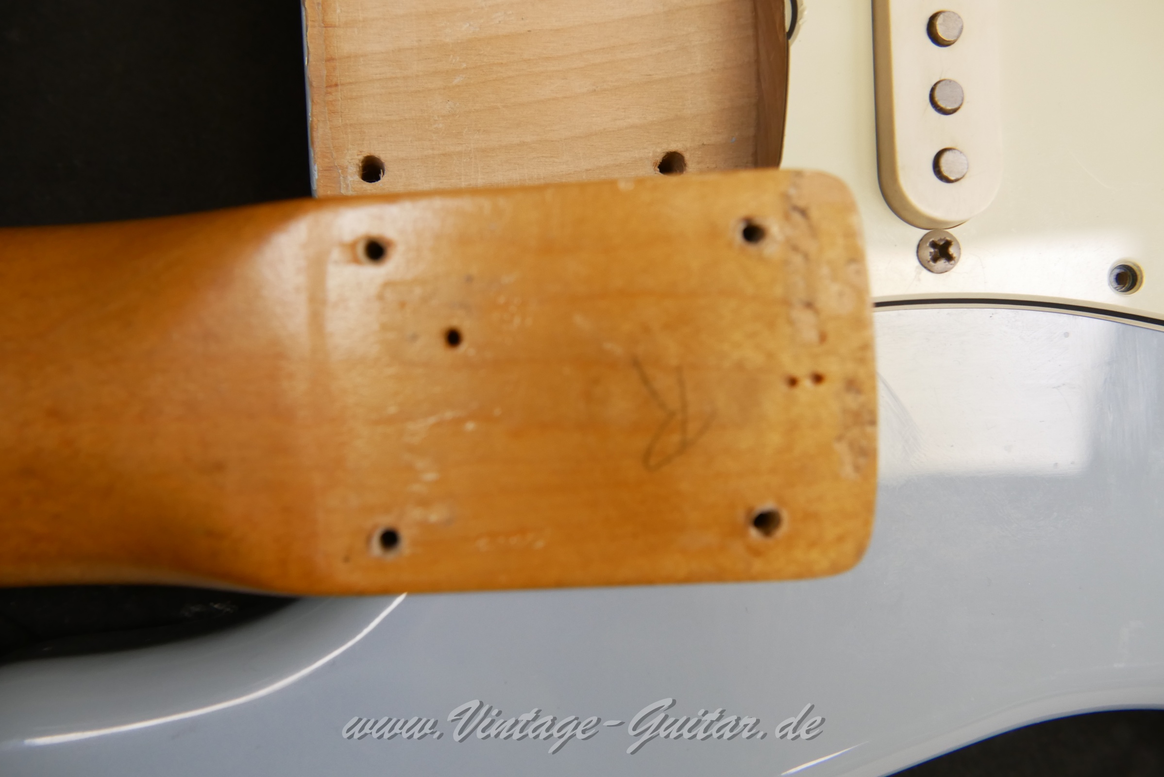 | Details: | Original slabboard neck w. thick Brazilian rosewood fingerboard (comes with CITES) penciled date "61" still visible. Only "Fender" from the decal is preserved. |